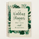 Tropical Foliage Modern Greenery and Leaves Border Personalised Wedding Planner book. Perfect for your tropical themed wedding plans. In a bold colour palette of rich greens, emerald, and gold foil look. This design is perfect for a beach, destination, or summer celebration. With feelings of a tropical paradise, this vivid palm leaf design will compliment your beach or tropical venue. In a dark green, teal, emerald, greenery, and gold colour scheme - Personalised Wedding Planner book.