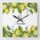 Modern Lemon Citrus Monogram Name Square Wall Clock