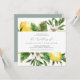 This boho modern lemon garden square wedding invitation is perfect for a spring or summer wedding. The rustic mediterranean design features bright and beautiful watercolor lemons with bohemian white flowers and elegant green leaves.