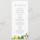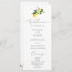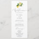 This modern lemon garden wedding program is perfect for a spring or summer wedding. The rustic mediterranean design features bright and beautiful watercolor lemons with bohemian white flowers and elegant green leaves. Include the name of the bride and groom, the wedding date and location, thank you message, order of service, bridal party and an optional "in loving memory" memorial.