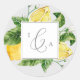 These modern lemon grey monogram wedding envelope seals are perfect for a spring or summer wedding. The rustic mediterranean design features bright and beautiful watercolor lemons with bohemian white flowers and elegant green leaves. Personalise these stickers with the initials of the bride and groom.