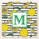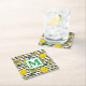 Modern Lemon on Black & White Pattern Monogram Square Paper Coaster