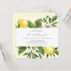This boho modern lemon yellow square wedding invitation is perfect for a spring or summer wedding. The rustic mediterranean design features bright and beautiful watercolor lemons with bohemian white flowers and elegant green leaves.
