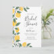 A modern bridal shower invitation in calligraphy lettering saying "Bridal Shower" and fresh lemons and leaves drawing on the side. You can personalise the details.