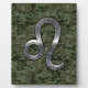 Modern Leo Zodiac Sign on Green Digital Camo Plaque