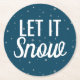 Modern let it snow blue with snowflakes round paper coaster