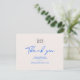 This thank you card design features modern script "Thank you" and custom text with social media icons. A stylish blue & cream insert card for your product packaging. More business stationery designs available at my shop BaraBomStudio.