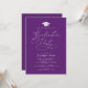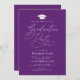 purple elegant white lettering script grad party invite. The text and colours can be edited.
