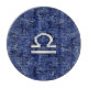 A silver chrome like Libra Zodiac symbol on a navy blue digital camouflage style design texture print background. A modern urban racy design for a great custom birthday gift idea.