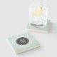 Beautiful stone coaster with mint blue floral wreath and personalised monogram.