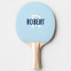 Modern ping pong paddle with a light blue background, a white monogram and a dark blue typography name. Personalise with your name and monogram.