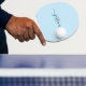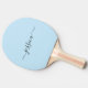 Modern ping pong paddle with a girly, blight blue background and a black hand lettered script. Personalise with your name.
