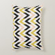 Stylish accent pillow with faux glitter gold, peachy pink, white & black chevron pattern.