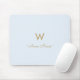 Modern Light Dusty Blue Gold Script Monogram Mouse Pad