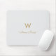 Modern Light Grey Gold Script Monogram Mouse Pad