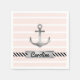 Trendy paper napkins with grey watercolor anchor on a light pink & white striped background. You can also personalise the design with custom text under the anchor.