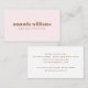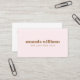 Pale pink or any colour business cards or personal profile cards with your name and title/business name on the front. Customisable contact information on the back. The card has a thin, subtle white border on the front.