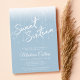 This dusty blue and white sweet 16 invitation features a modern script font with glam lights.