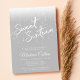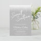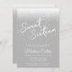 This grey and white sweet 16 invitation features a modern script font with glam lights.