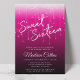 This modern fuchsia pink and black sweet 16 invitation features a modern script font with glam white lights.