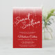 This bold red sweet 16 invitation features a modern script font with white glam lights.