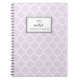 Lilac Quatrefoil Pattern Personalised Notebook. Customisable modern notebook featuring lilac and white quatrefoil pattern. This modern pastel notebook will be perfect as a personalised gift.