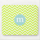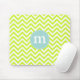 Lime green and white chevron stripes featuring your monogram on a aqua blue circle frame. For stylish, modern girly girls.