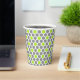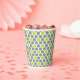 This cute paper cup features a trendy geometric pattern with grey and lime green hexagons.