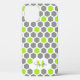 This iPhone case features a geometric hexagon pattern in 3 colours: white, grey, and lime green. Personalise it with a name in black and a monogram in matching green shade, placed at the bottom.
