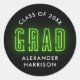 Modern Lime Green Neon Graduation Classic Round Sticker