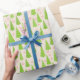 Modern Lime Green & Pink Christmas Trees Seasonal Wrapping Paper