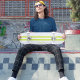 Modern Lime Green White Racing Stripes Monogrammed Skateboard