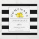 Rustic watercolor lemons and leaves, modern limoncello beverage label. Labels feature, chic black and white stripe pattern background.