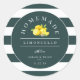 Modern chic limoncello favour stickers. Design features, watercolor lemons and leaves, muted emerald green and white stripe pattern background and template text lines for your name and event date.