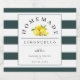 Rustic watercolor lemons and leaves, modern limoncello beverage label. Labels feature, chic rustic emerald green and white stripe pattern background.