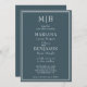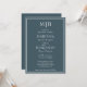 Modern boho blue lined border minimalist wedding invitations templates with initials at the top for you to customise.