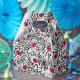 This design features a pattern made up of pink lips and abstract black and white pattern.