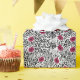 This design features a pattern made up of pink lips and abstract black and white pattern.