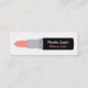 A modern and contemporary business card that has a design of a lipstick with space on the stick for personalisation of details. The colour of the lipstick is in a light peachy orange shade. This slim and sleek business card design is great for makeup artists, stylists and those in the beauty businesses. Personalise easily with your business details.