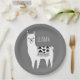 Adorable black and white llama themed baby shower paper plates with a neutral grey background colour.
