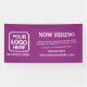 Modern, simple and eye-catching "Now Hiring" business banner; design combines a customisable magenta background with the always professional simple and easy to read white typography. Versatile design adapts to any industry or type of business. Simple update the text areas to your specific marketing and advertising needs.