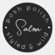 Elevate your business with our sophisticated, minimalist sticker template. The sleek black design offers a polished and professional appearance, ensuring your brand leaves a lasting impression. Fully customisable, this template makes it easy to integrate your company name and tag line details for seamless alignment with your brand identity.