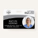 Represent your business in style by supplying nursing staff with with modern and professional identification badges. Uploading your company logo, an employee photo, and your security barcode is easy and quick. Using the templates for your company name, employee name, job title, department/team/division, employee ID#, and expiration date is simple and straightforward. The black, gray and white design is classic yet trendy. This name badge provides security for your company and staff, while at the same time presenting corporate branding with a stylish appearance.