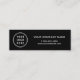 Professional black mini business card for your business. The front features your logo, company name and a block of white text for your slogan, contact details or other information. On the back, input your website URL address to create a QR code for customers to scan for a list of your products, services, prices or other information and add additional information in simple modern white typography.