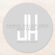 Modern Looking Business Monogram | Grey Round Paper Coaster
