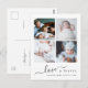 This modern timeless multiple photo baby shower thank you card is ideal for anyone who wants to thank their guests for attending their special day. The modern, elegant design has a minimalist style and features four customisable photos placed in the collage and whimsical elegant typography for the header: love and thanks. On the bottom there is a baby's name and a date of birth. This simple design will look beautiful with retro black and white photos but also colour ones! On the reverse, there is your customisable thank-you message. Use the "customise" button to replace photos and edit text.