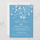 Beautiful stylish & modern love birds wedding anniversary party invitation features a pair of love birds with a tree branch adorned with butterflies & hearts set on a turquoise blue pin stripe background. Beautiful for a 25th, 30th, 40th, 45th, 50th, or 60th wedding anniversary party celebration. Available in our shop in a large assortment of modern & chic popular colour choices