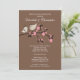 Start off your event off right with our Trendy & Modern Bridal shower invitation featuring a cute pair of bride & groom birds in love sitting on a honeysuckle pink floral branch set on a brown background . Just customise our beautiful bird couples bridal shower invitation with your wedding information and you're all set to go. ©JW Illustrations