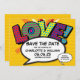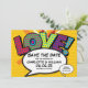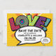 A fun, cool and trendy retro comic book pop art-inspired save the date invitation that puts the wham, zap, pow into your wedding date announcement. The reverse features a matching comic book polka dot pattern which you can replace with your own image or photo. Designed by Thisisnotme©