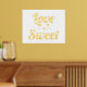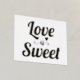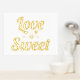 Modern "Love is sweet" quote bold typography and heart gold foil on white print.